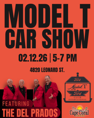 The Model T Ford Club International, in partnership with the City of Cape Coral, will host a vintage Model T car show on Thursday, Feb. 12, from 5 to 7 p.m. at 4820 Leonard St.